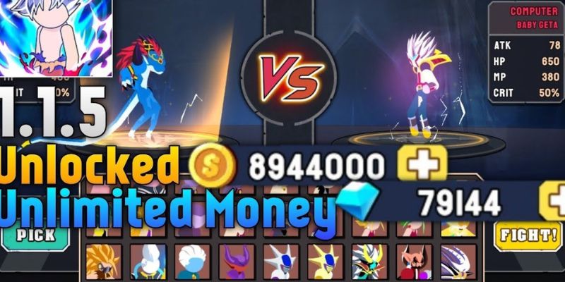 Một trong những điểm mạnh của Stickman Warriors Hack chính là tính năng vô hạn tiền và kim cương. Thông thường, trong game, bạn sẽ phải kiếm tiền hoặc kim cương để mở khóa nhân vật và nâng cấp vũ khí. Nhưng với phiên bản MOD, bạn có thể dễ dàng mua sắm tất cả các vật phẩm và nâng cấp không giới hạn mà không gặp phải bất kỳ khó khăn nào.